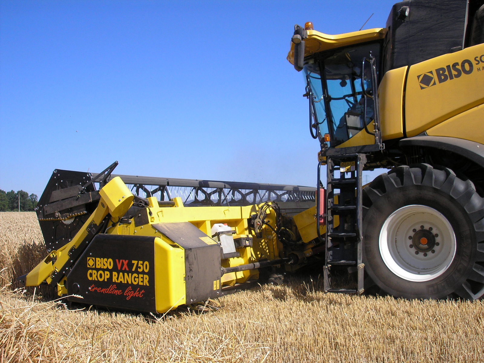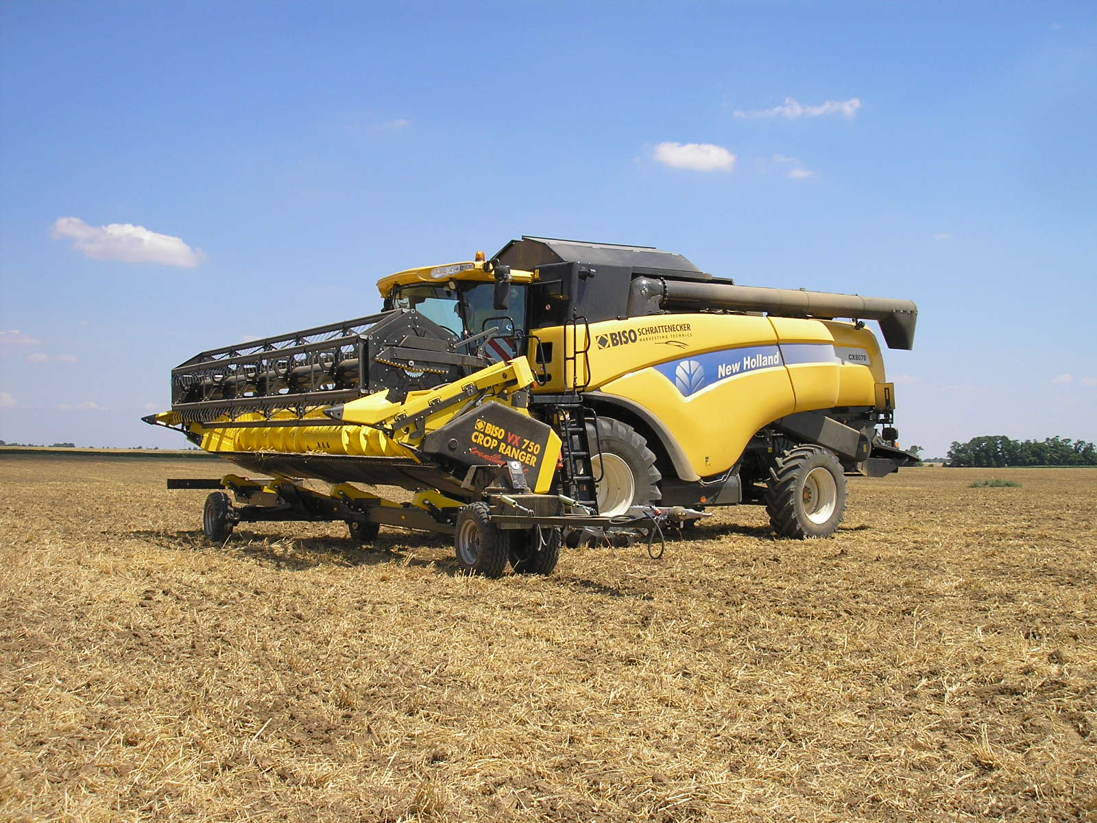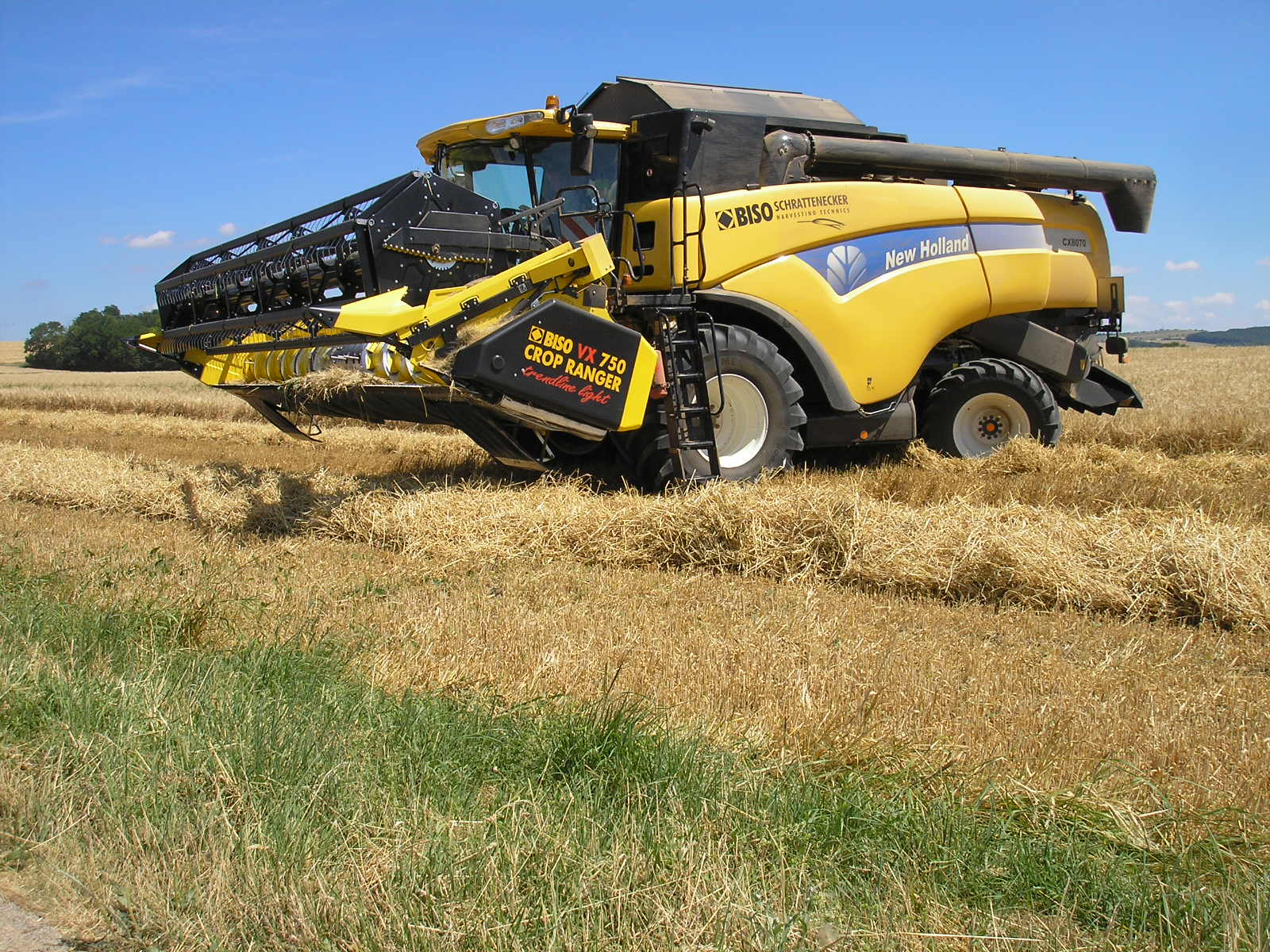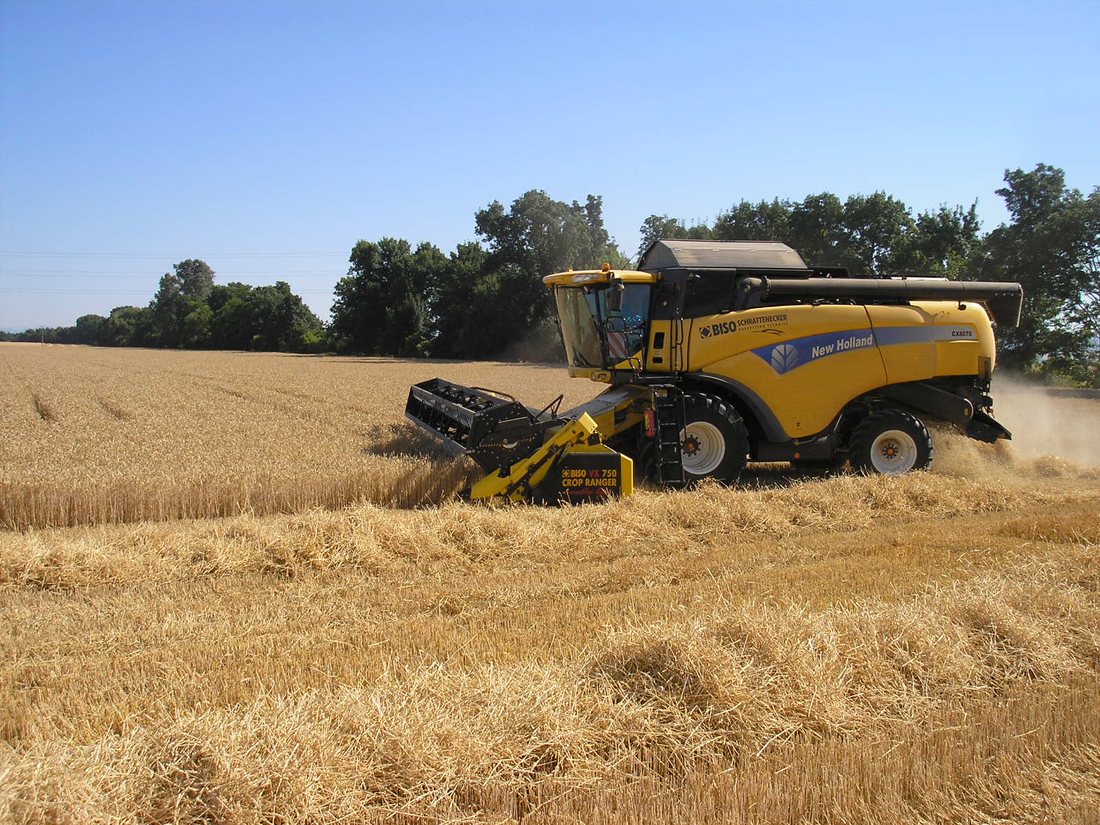 Combinación perfecta: la New Holland CX8070SL con cabezal BISO CropRanger VX750 TrendLineLiht ha sido un éxito de ventas durante muchos años. La segunda máquina más solicitada fue la CX8080SL con un tanque más grande, eje delantero planetario, neumáticos de 900 mm y un software de control del motor más potente. Se recomendó la barra VX850 para esta máquina.