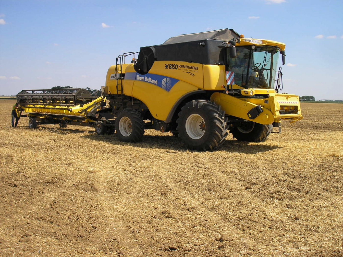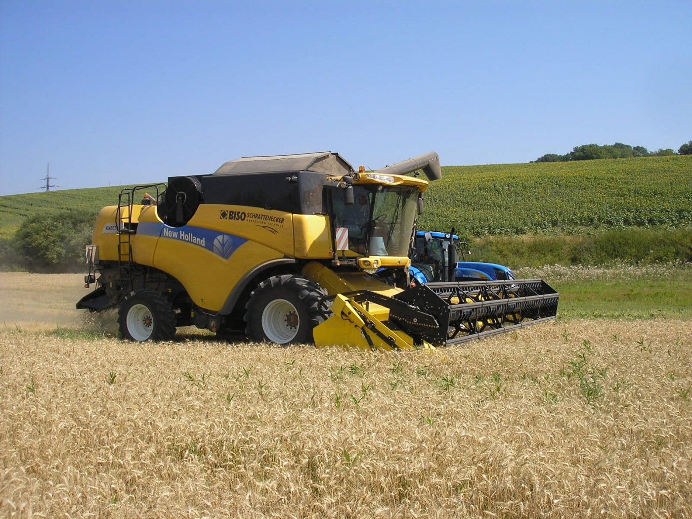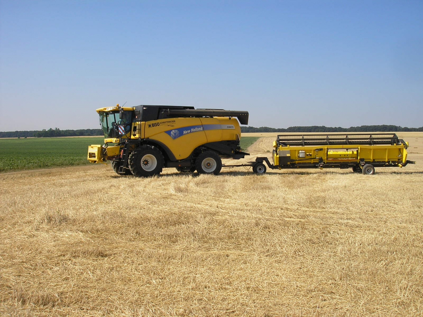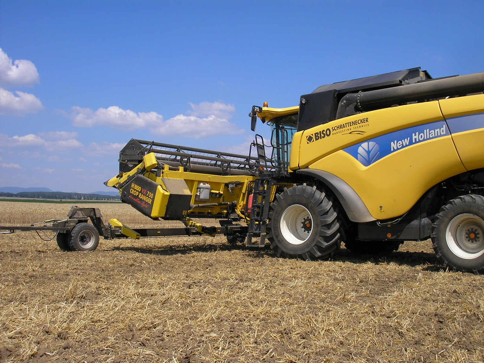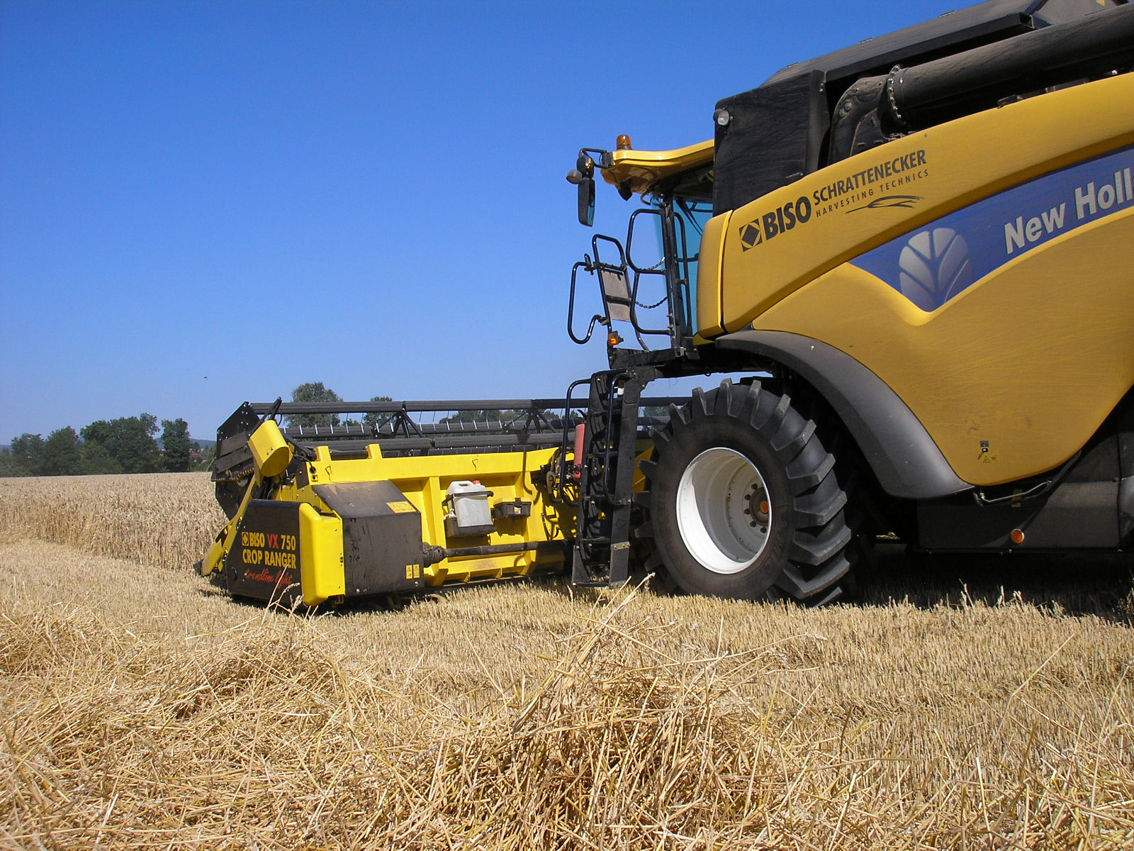 Combinación perfecta: la New Holland CX8070SL con cabezal BISO CropRanger VX750 TrendLineLiht ha sido un éxito de ventas durante muchos años. La segunda máquina más solicitada fue la CX8080SL con un tanque más grande, eje delantero planetario, neumáticos de 900 mm y un software de control del motor más potente. Se recomendó la barra VX850 para esta máquina.