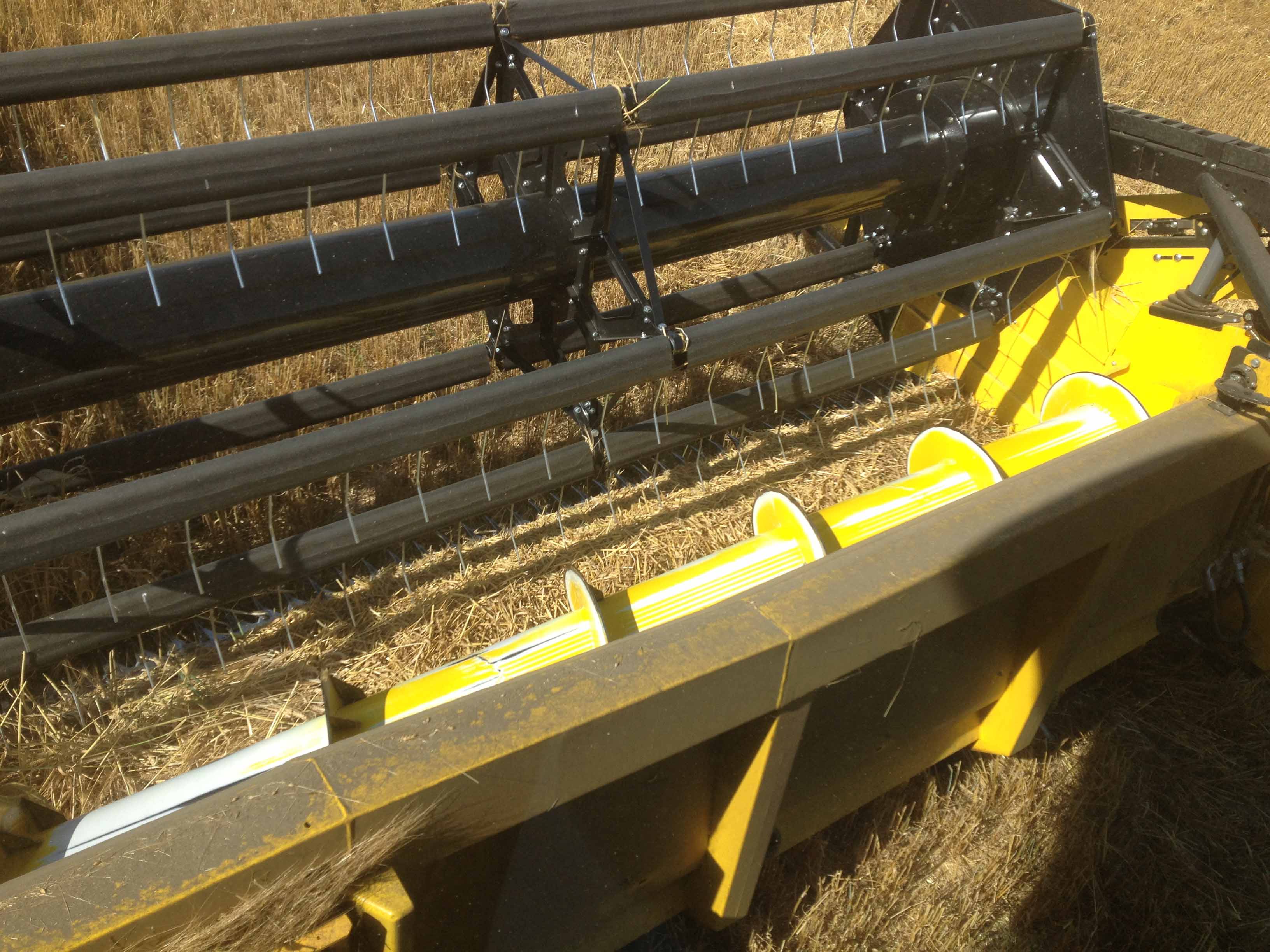 La regla de oro es alimentar el sinfin con la espigas hacia ella. Por lo tanto, el maquilero puede ajustar la posición de la cuchilla de corte para que la cosecha cortada caiga sobre la plataforma hacia el sinfín justo antes de ser transportada al canal alimentador de la cosechadora. El molinete acompaña al producto en esta fase. Incluso en presencia de productos de paja corta, la posibilidad de acortar la plataforma de corte permite que la barra alimente correctamente el sinfín, evitando que el producto se atasque entre la cuchilla de corte y el sinfín.