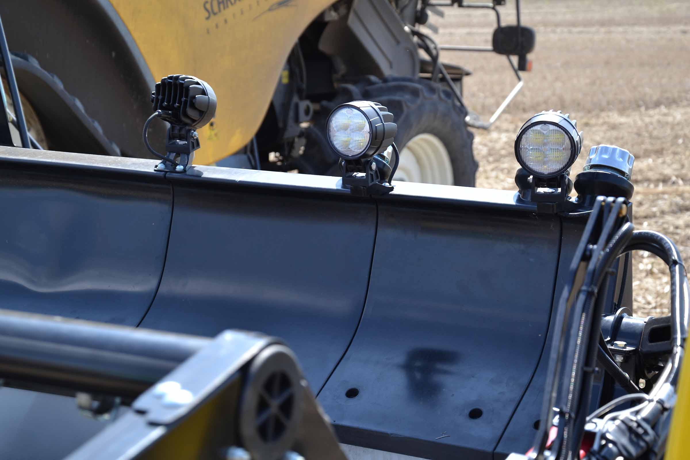 La barre de coupe est également équipée de phares de travail à LED qui peuvent être activés directement via le moniteur dans la cabine.