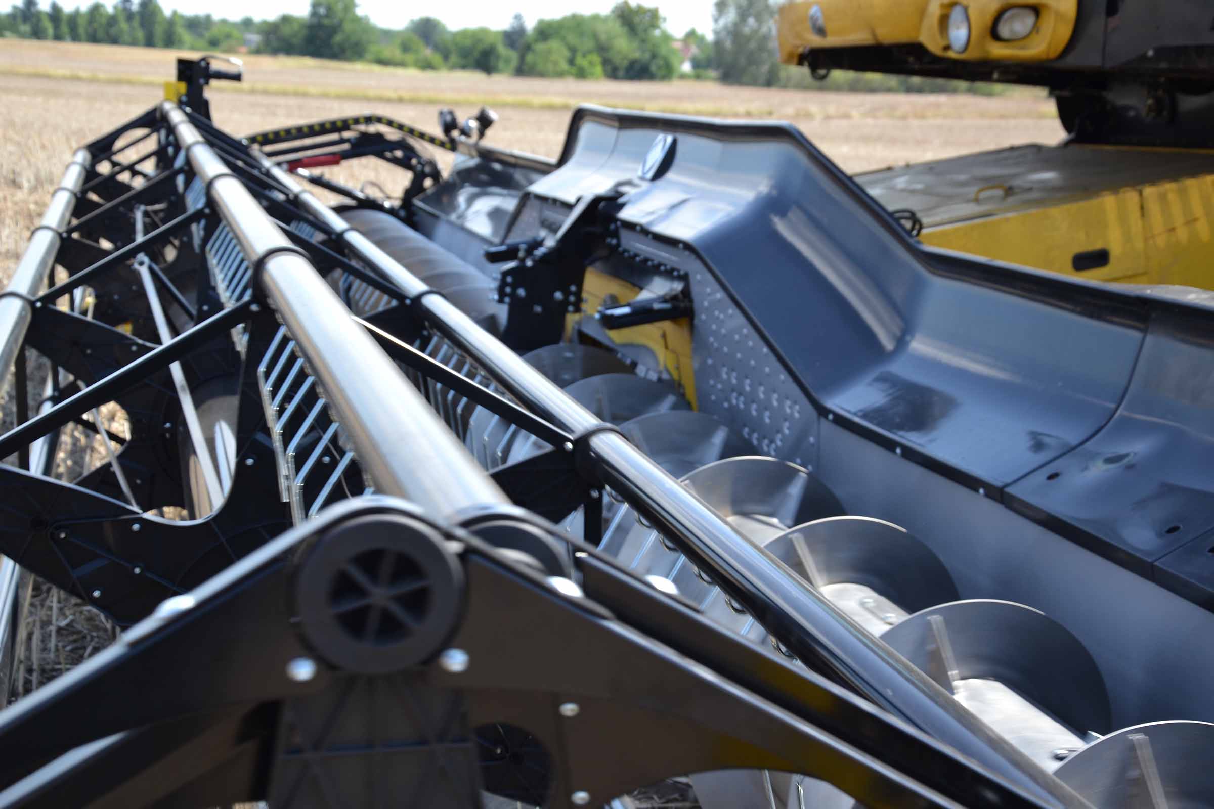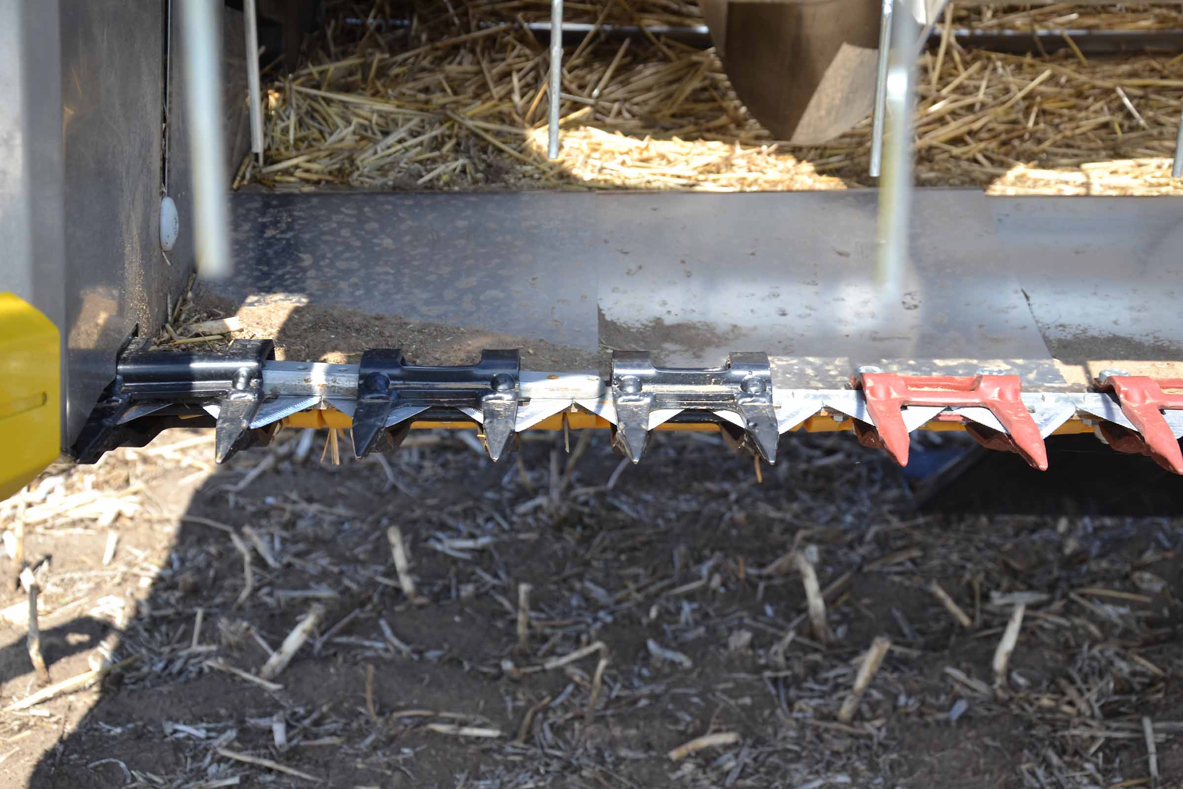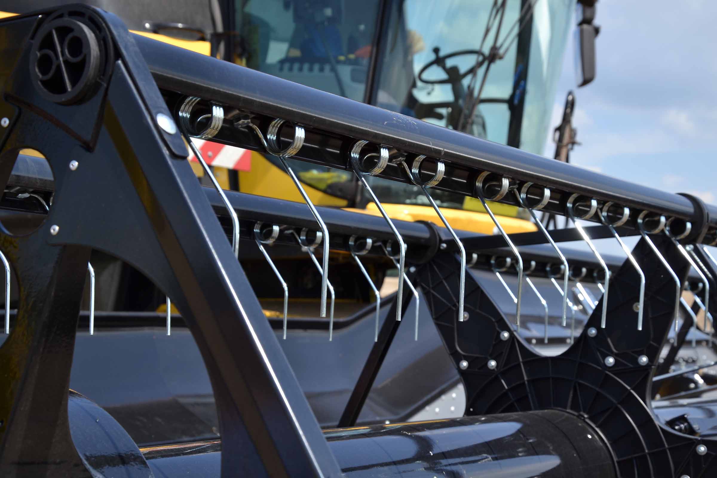 L'élément typique des barres de coupe BISO sont les lames à colza verticales intégrées. Cette solution permet à l'opérateur de maintenir les lames verticales inclinées et de les utiliser avec les diviseurs. Sur la photo, les lames de coupe sont inclinées vers l'arrière et désactivées.