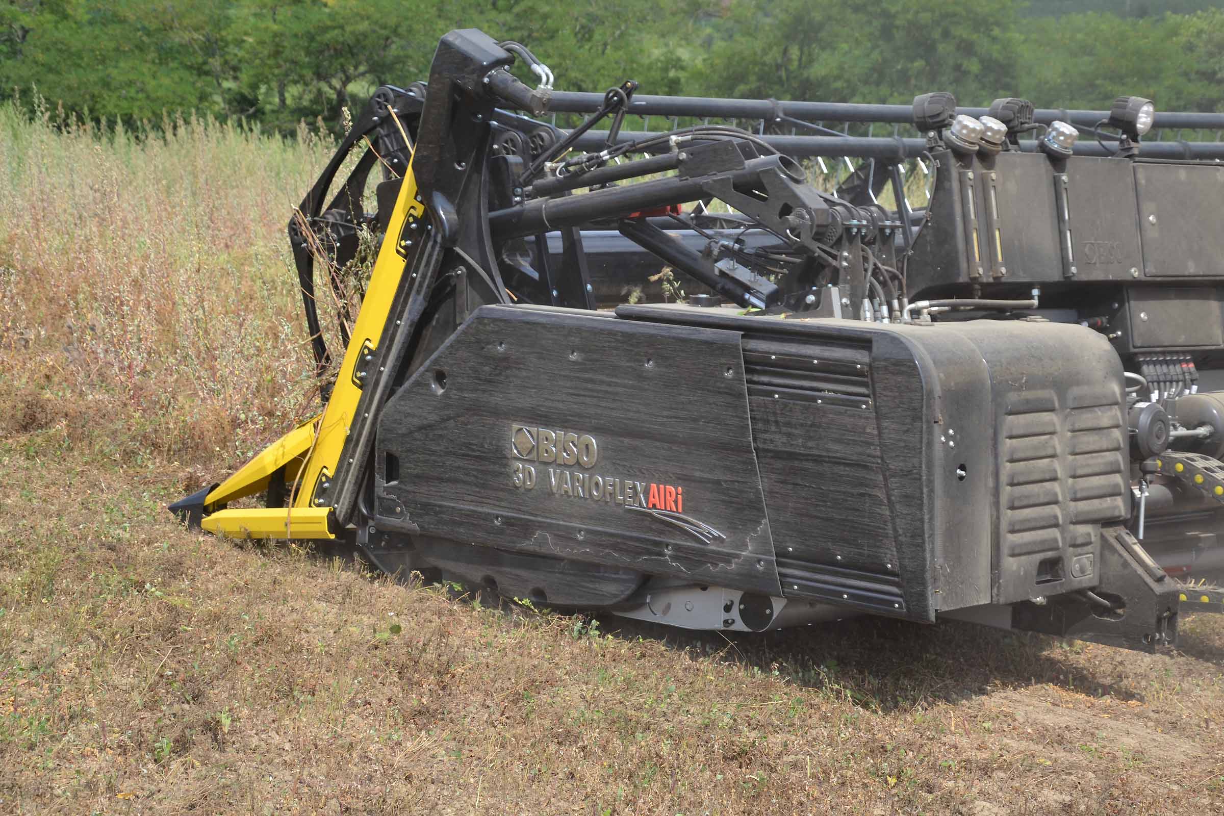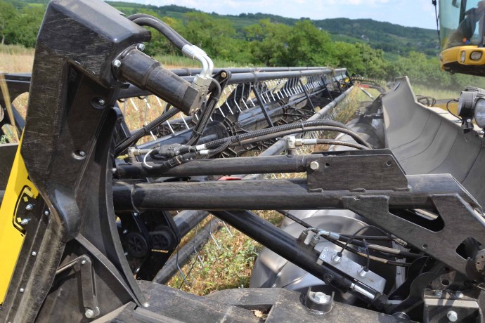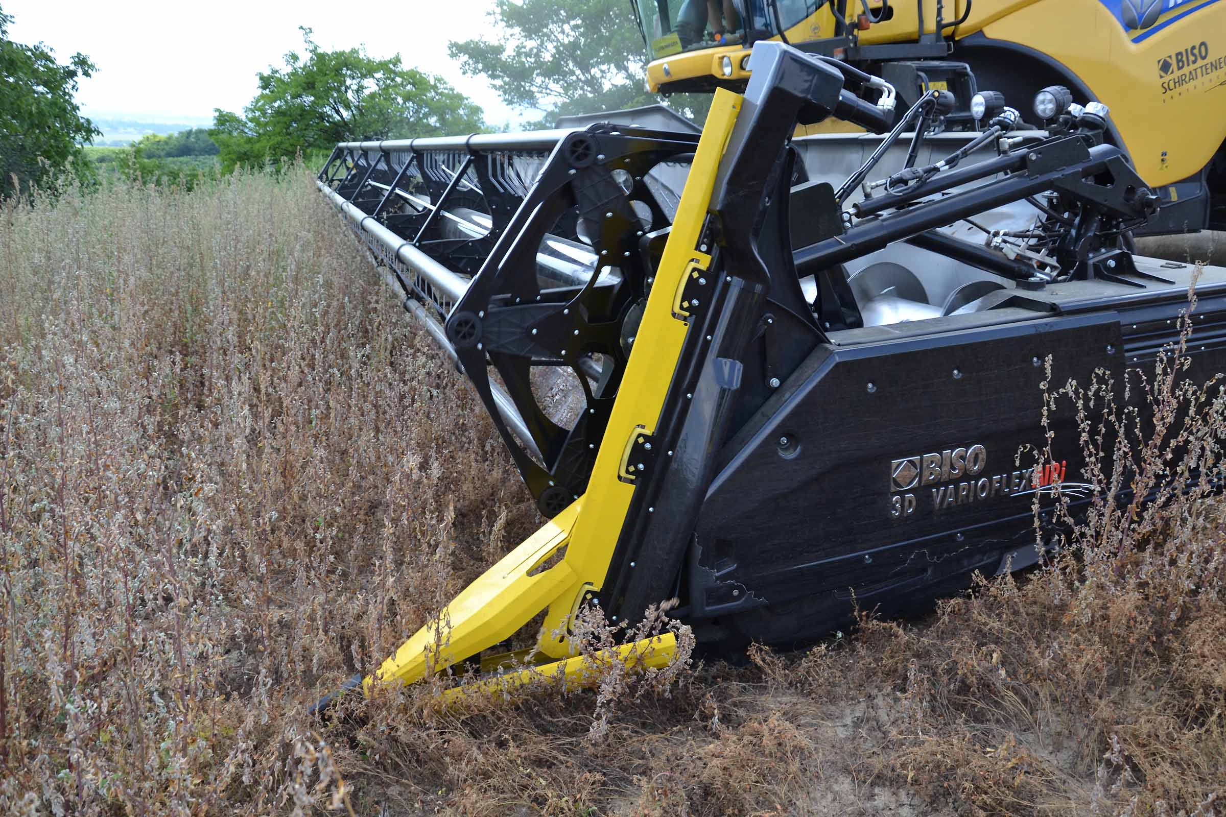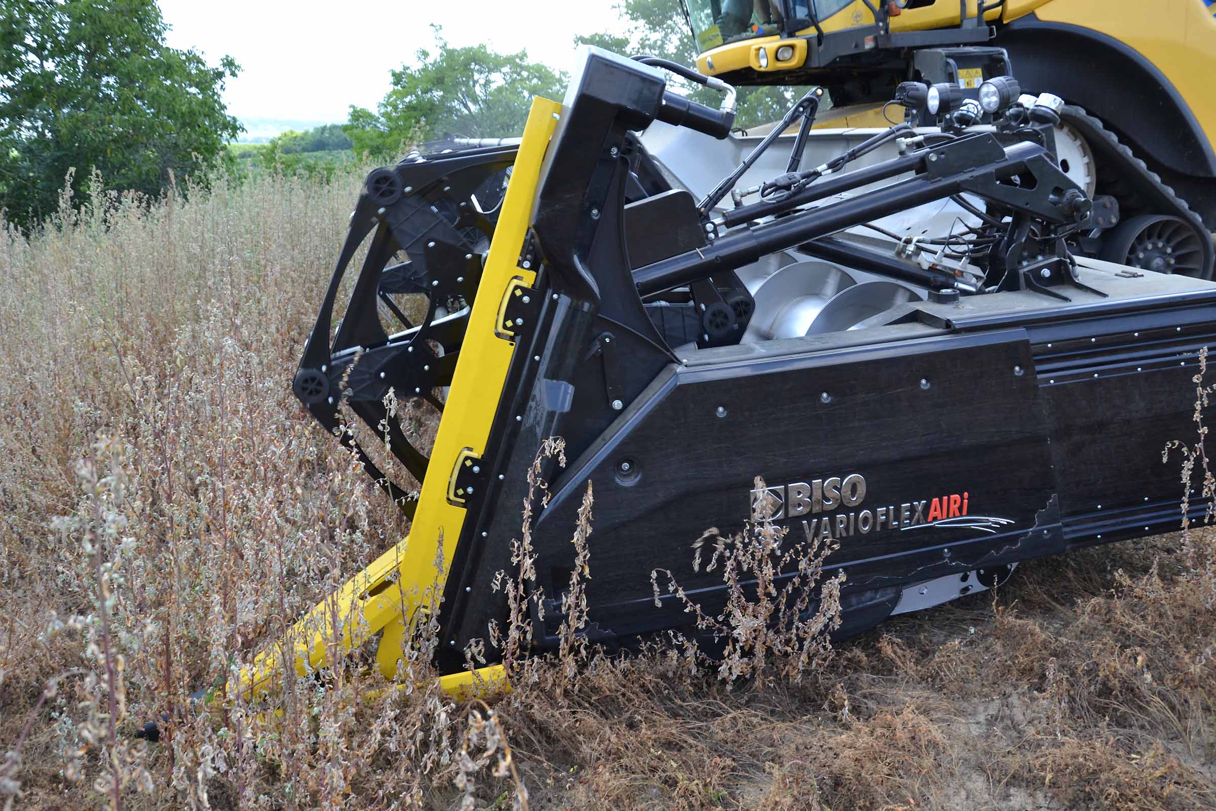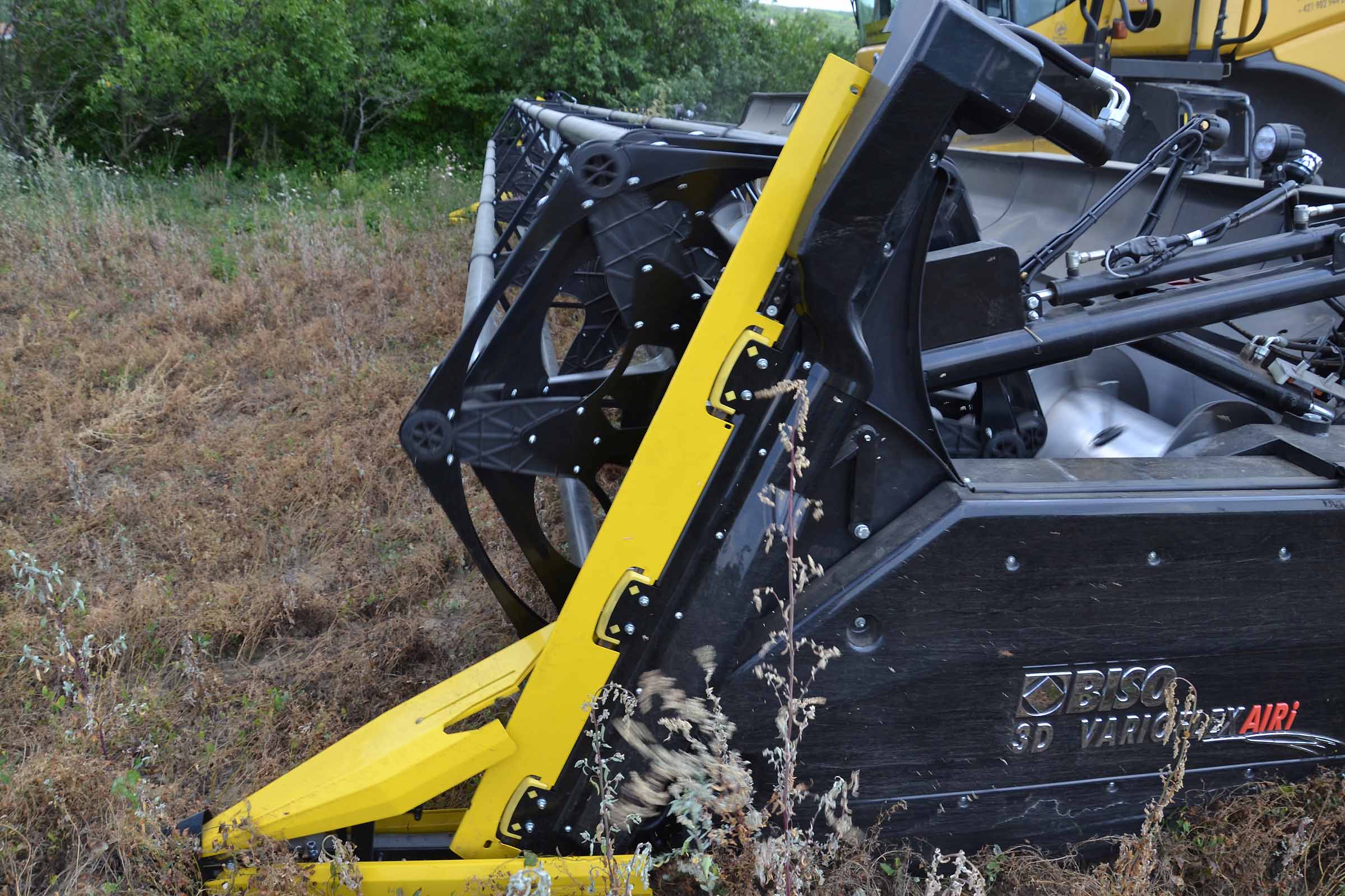 Per la raccolta abbiamo utilizzato la barra di taglio BISO 3D VARIOFLEX 1070 AIR I in modalità 100% FLEX. Nella foto si nota come la piattaforma vario era estesa al 60-70%. Il nostro modulo FLESSIBILE è in grado di lavorare indipendentemente dalla posizione della piattaforma vario.