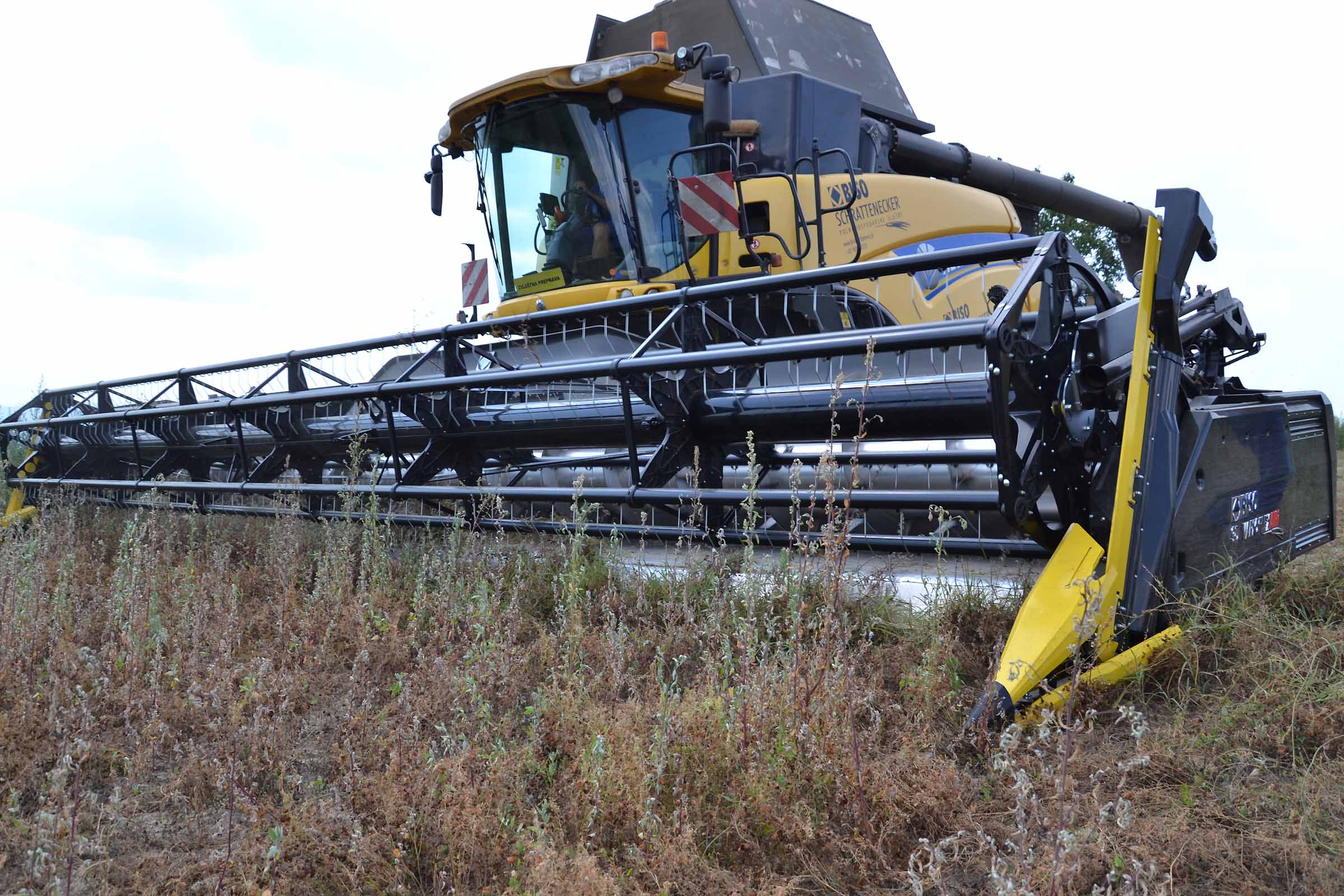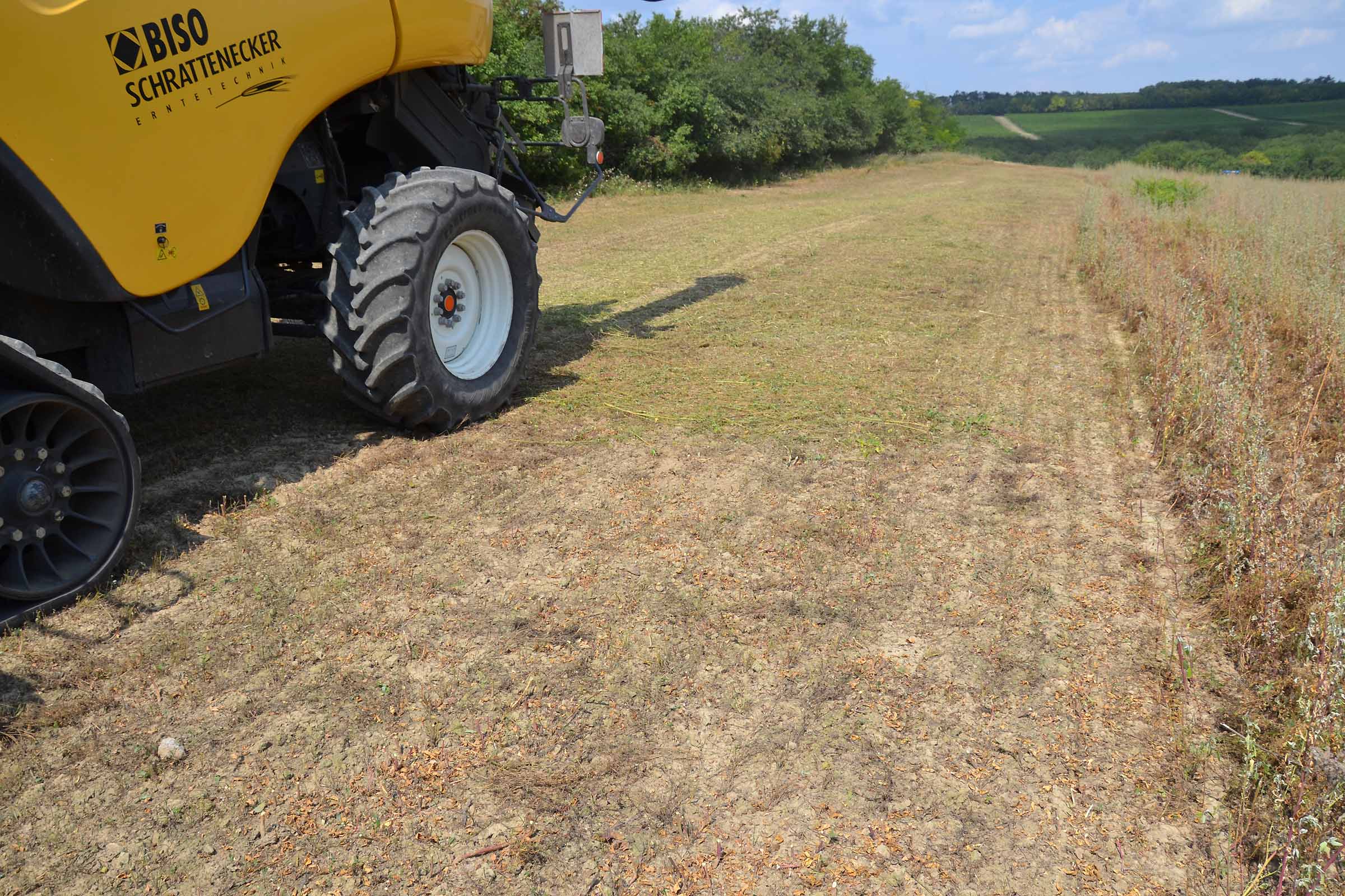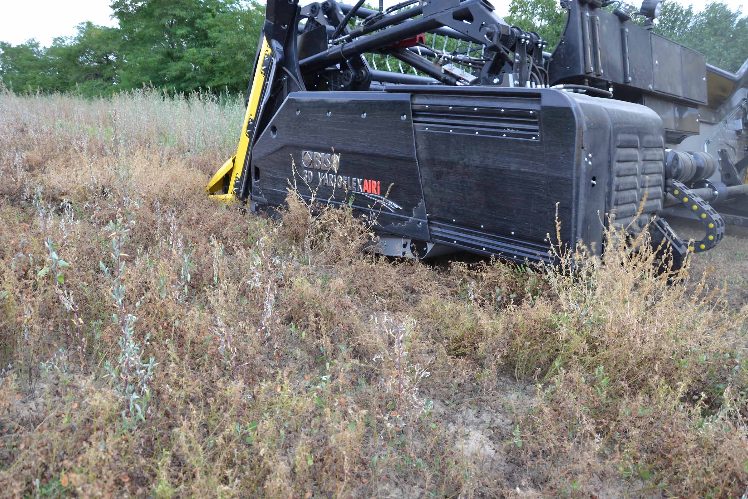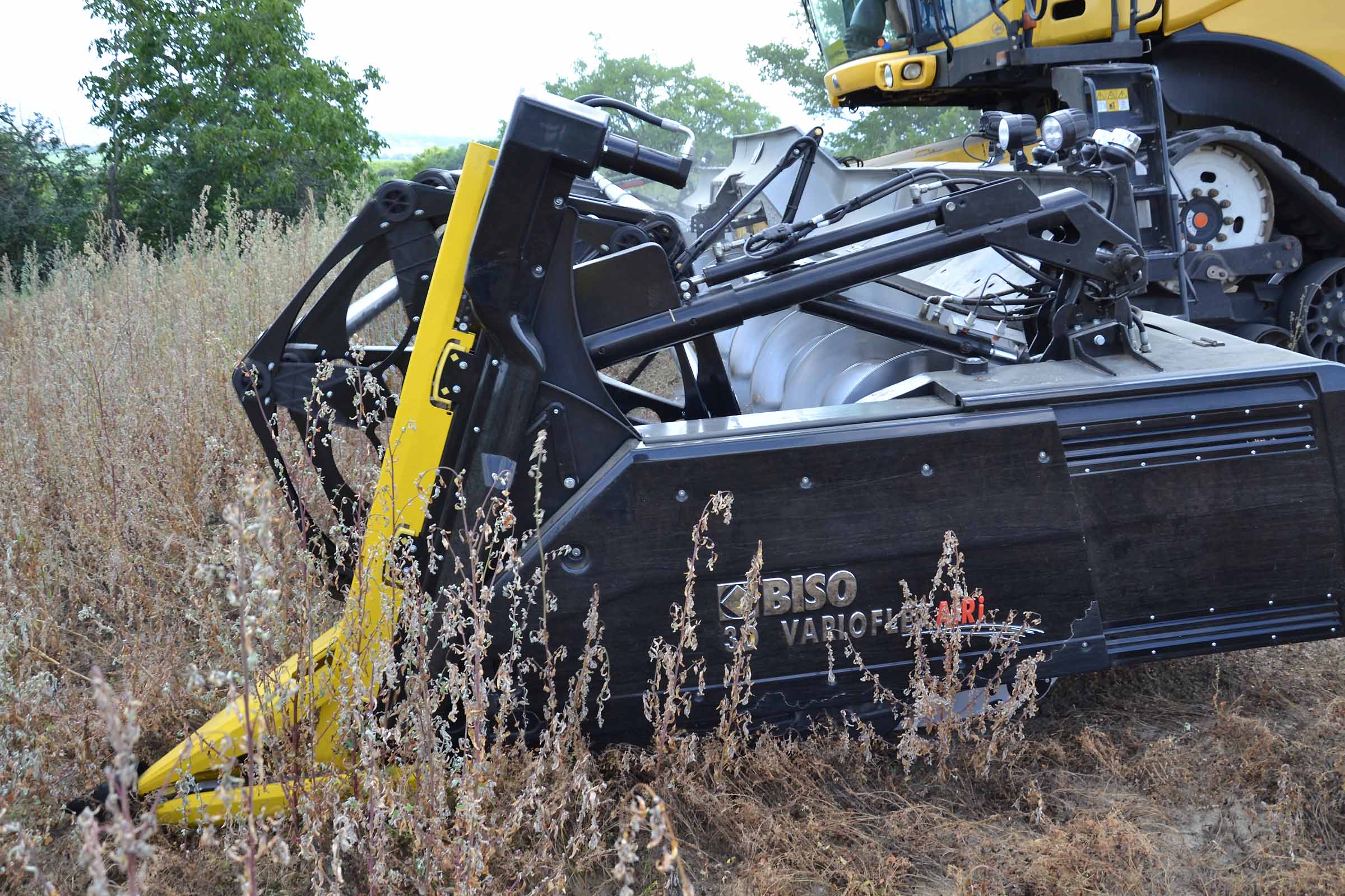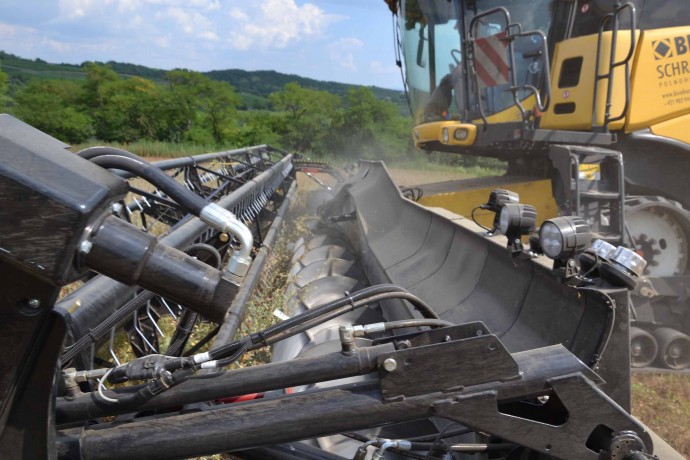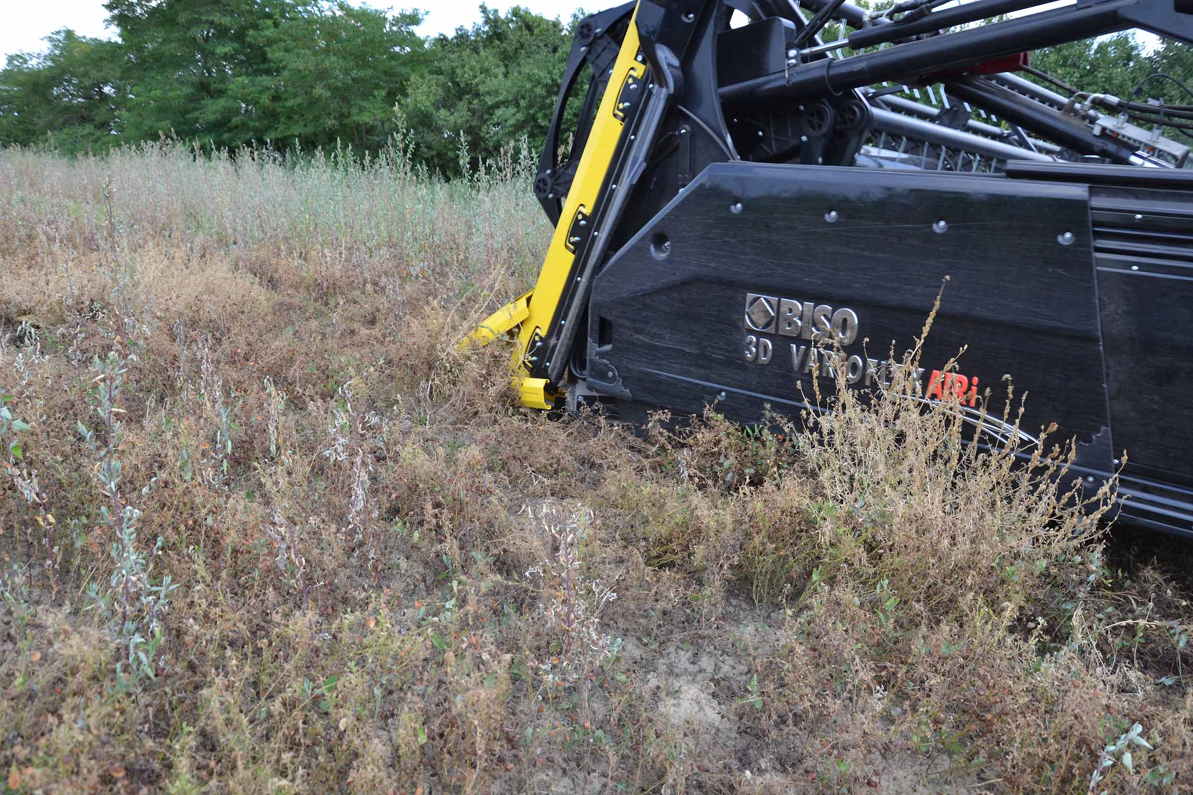 Per la raccolta abbiamo utilizzato la barra di taglio BISO 3D VARIOFLEX 1070 AIR I in modalità 100% FLEX. Nella foto si nota come la piattaforma vario era estesa al 60-70%. Il nostro modulo FLESSIBILE è in grado di lavorare indipendentemente dalla posizione della piattaforma vario.