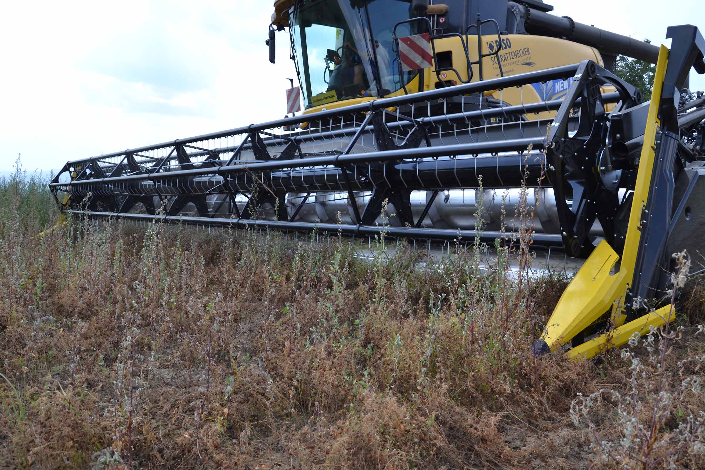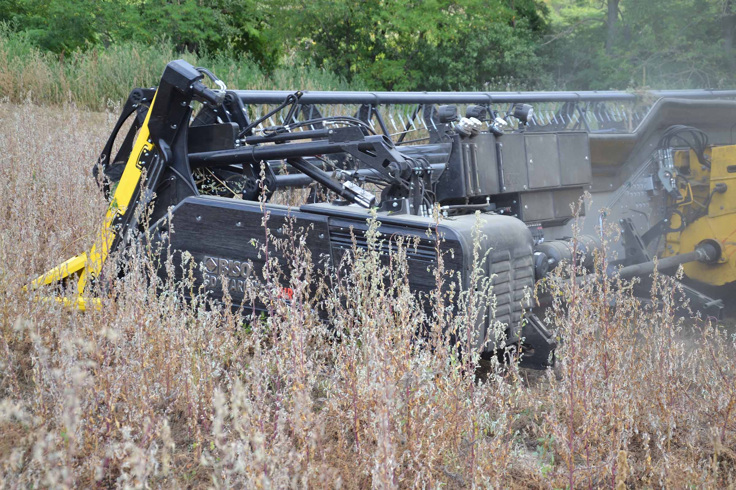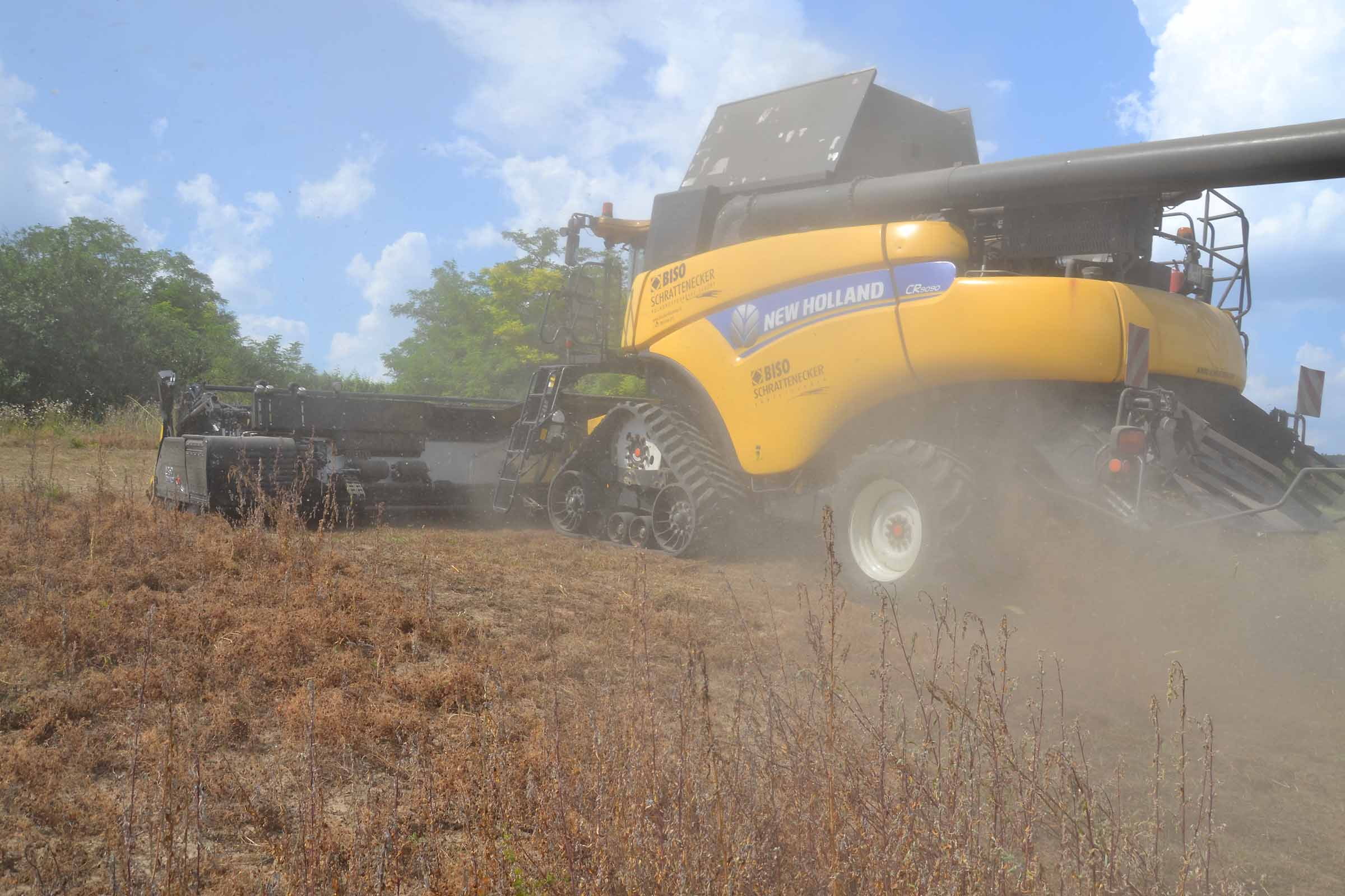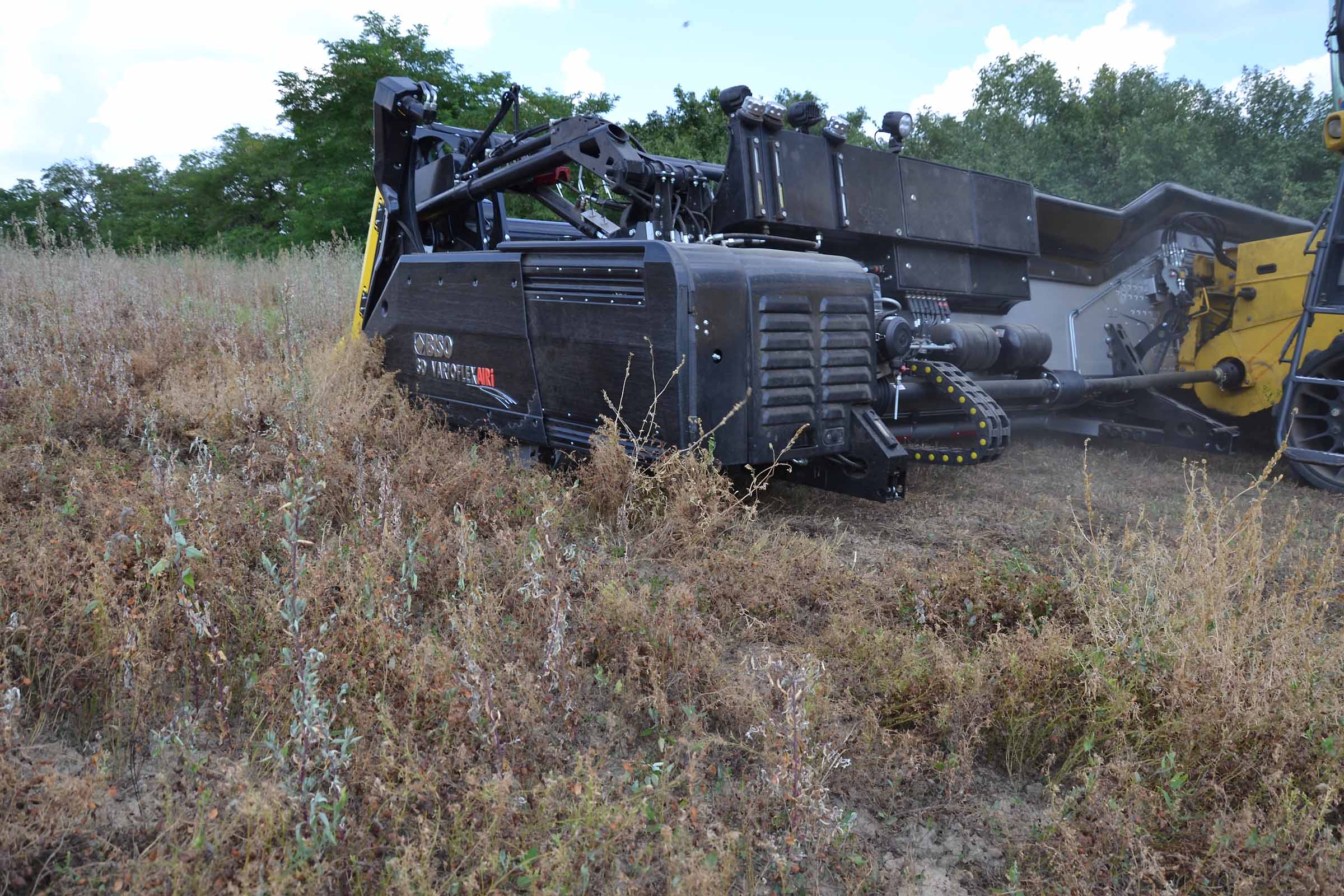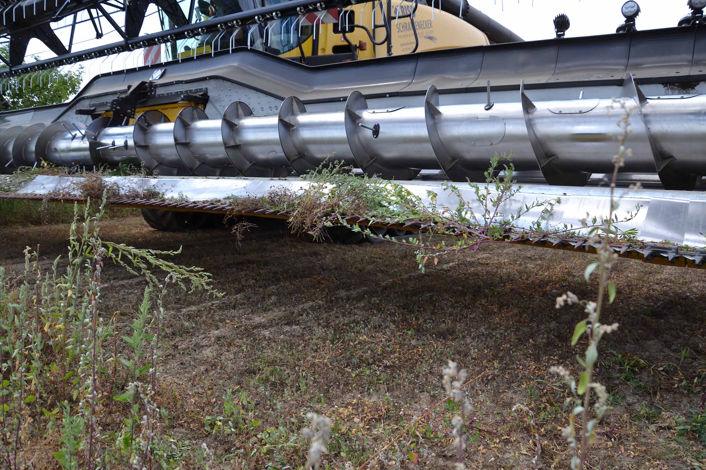 Per la raccolta abbiamo utilizzato la barra di taglio BISO 3D VARIOFLEX 1070 AIR I in modalità 100% FLEX. Nella foto si nota come la piattaforma vario era estesa al 60-70%. Il nostro modulo FLESSIBILE è in grado di lavorare indipendentemente dalla posizione della piattaforma vario.
