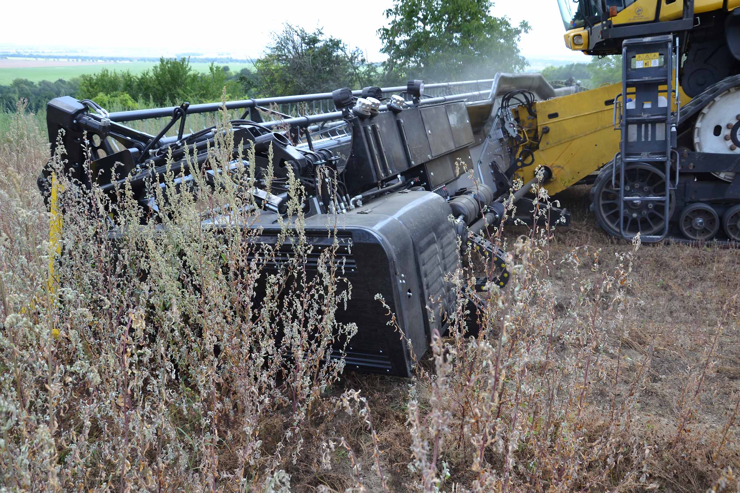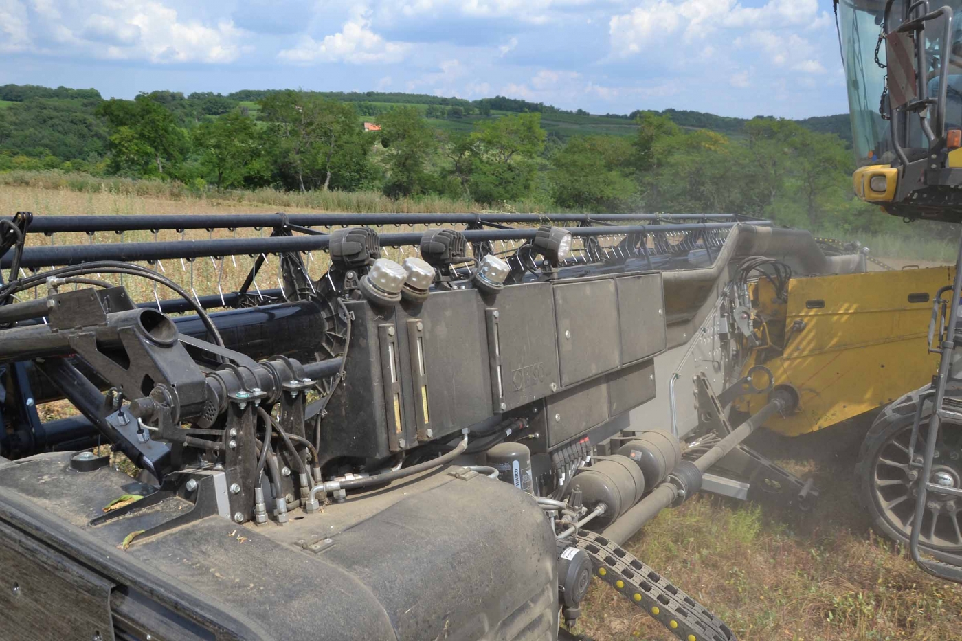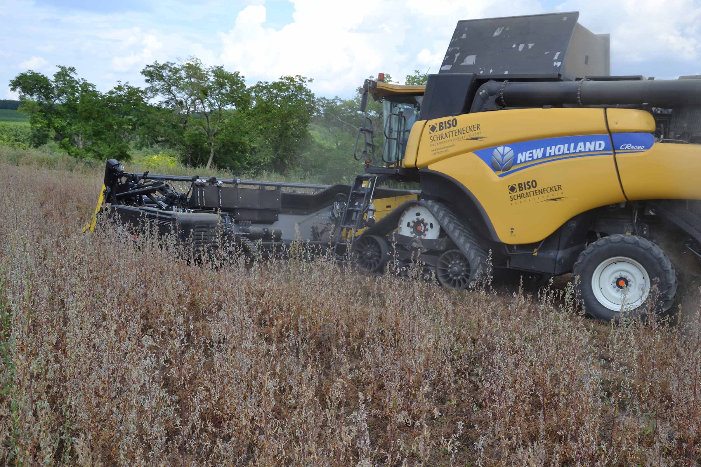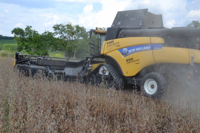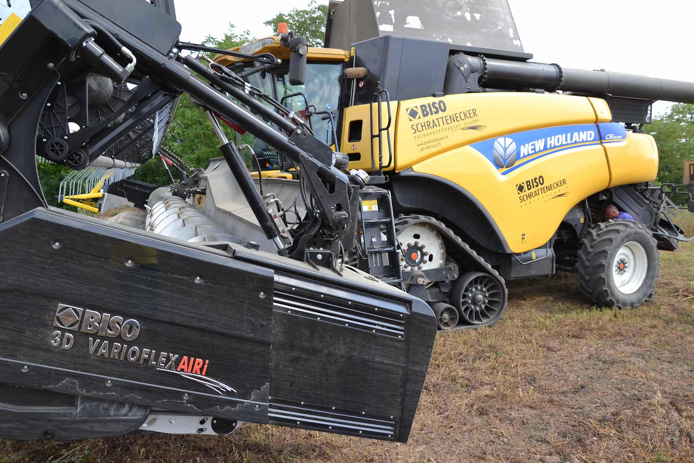 Per la raccolta abbiamo utilizzato la barra di taglio BISO 3D VARIOFLEX 1070 AIR I in modalità 100% FLEX. Nella foto si nota come la piattaforma vario era estesa al 60-70%. Il nostro modulo FLESSIBILE è in grado di lavorare indipendentemente dalla posizione della piattaforma vario.