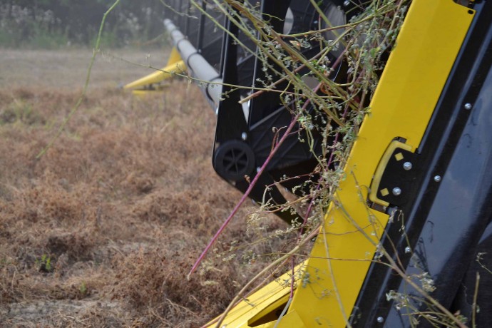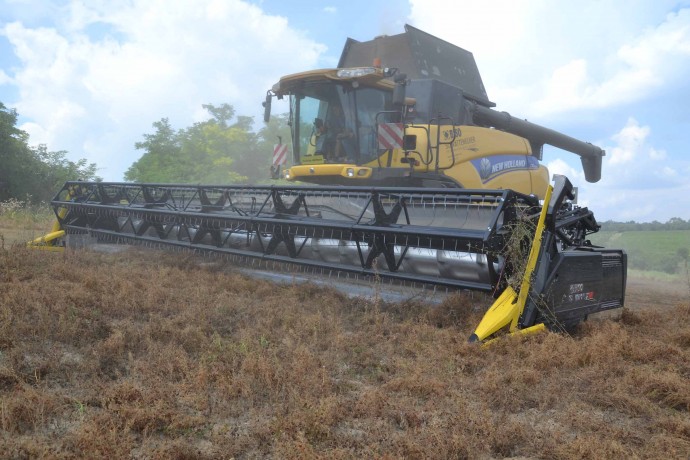 In queste condiziono la capacità della mietitrebbia non è un limite. È invece importante andare sufficientemente veloci per alimentare la barra di taglio.