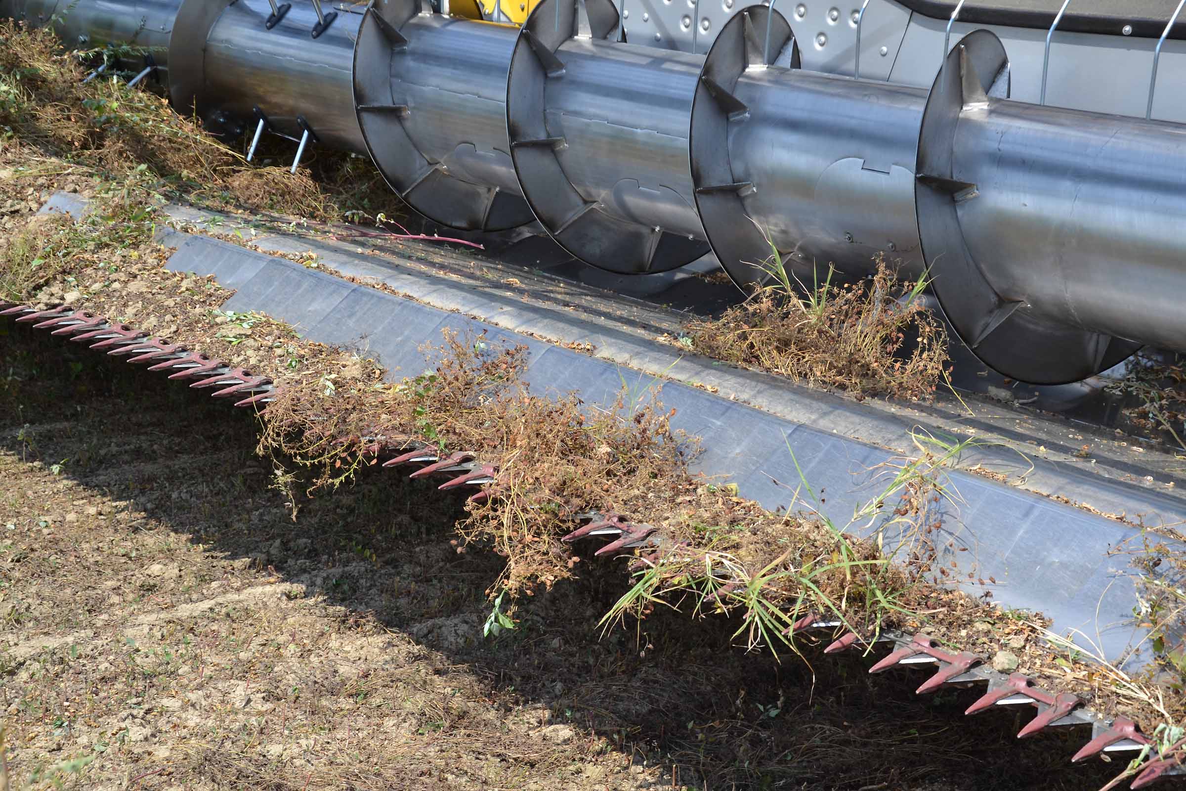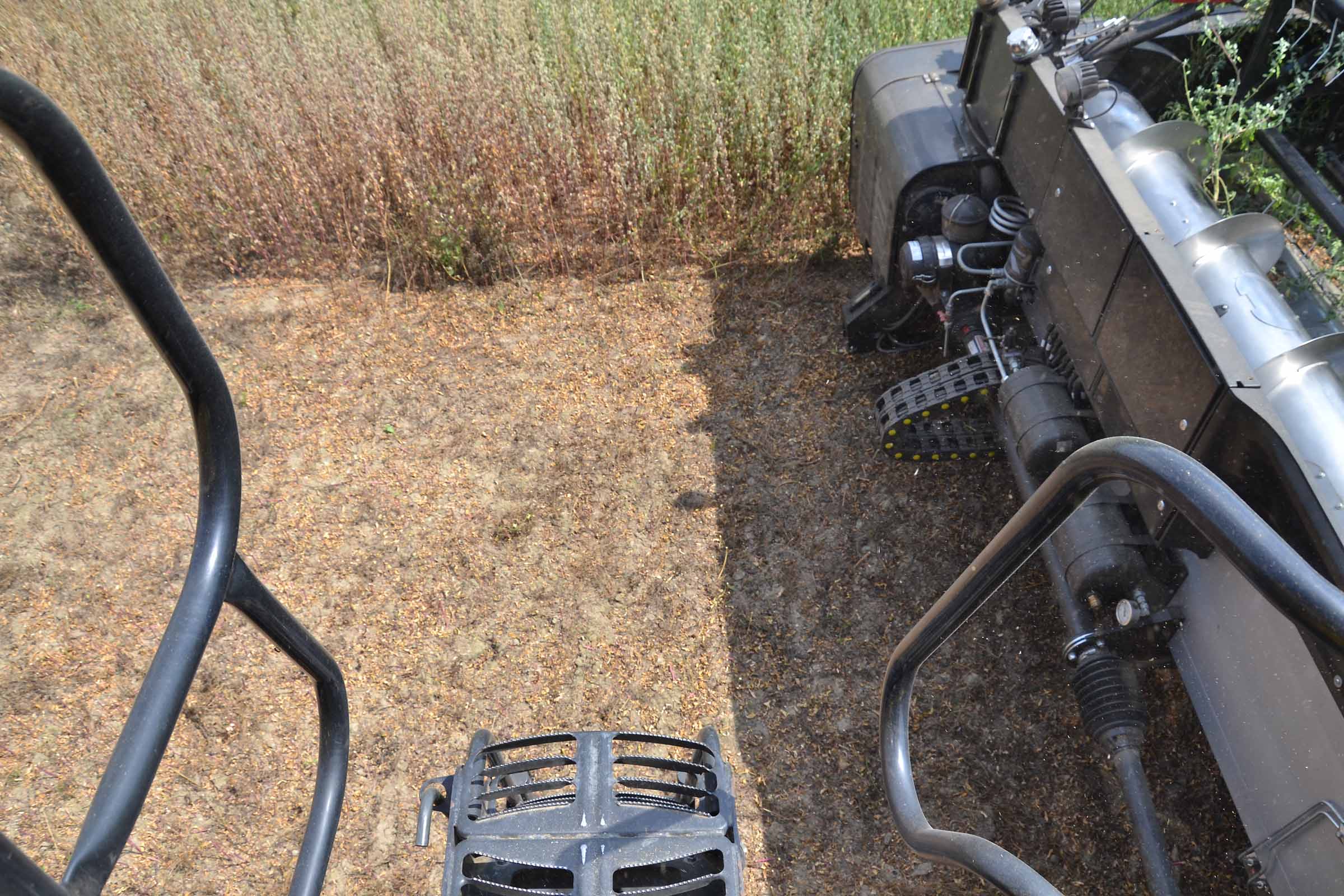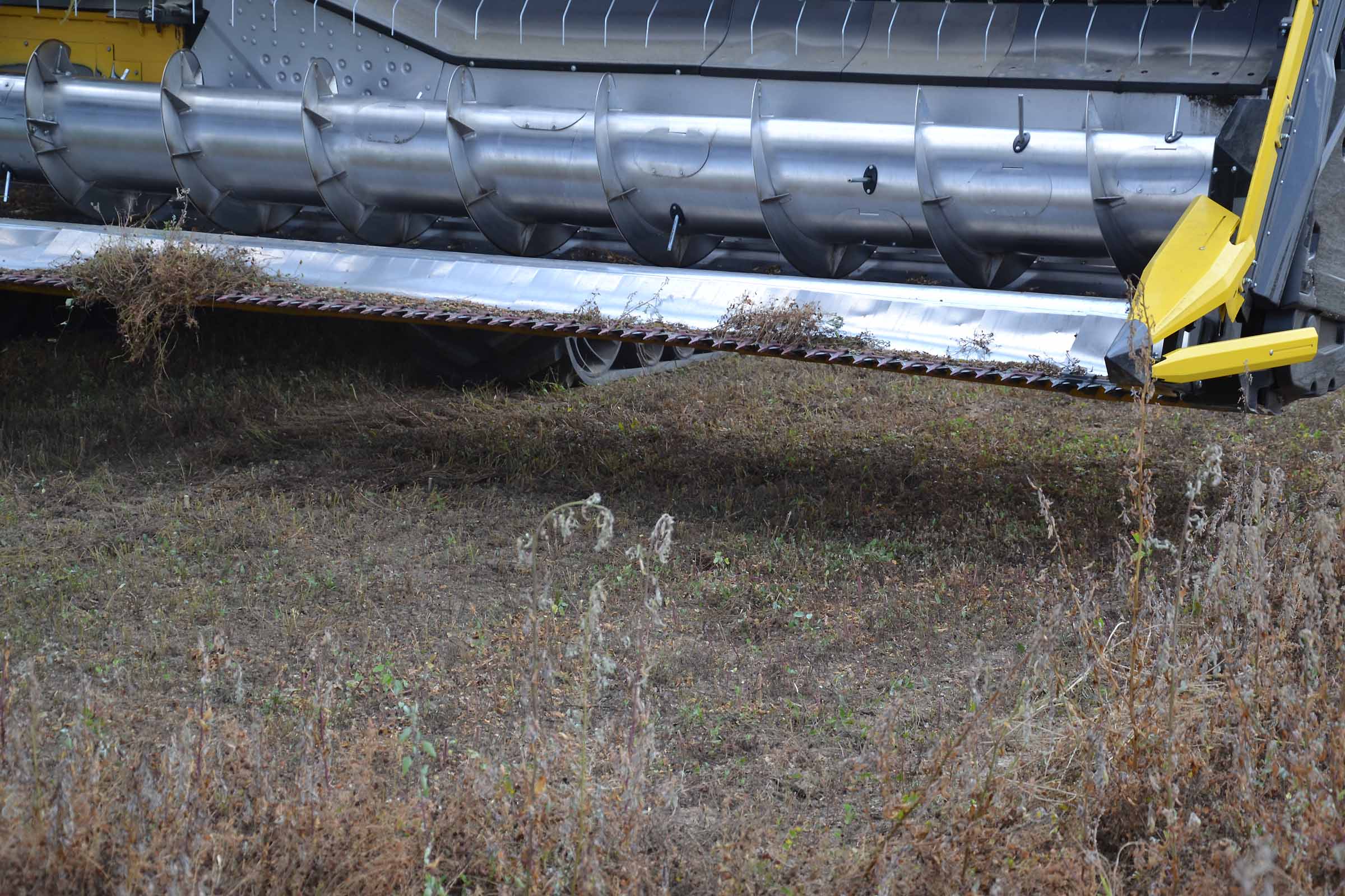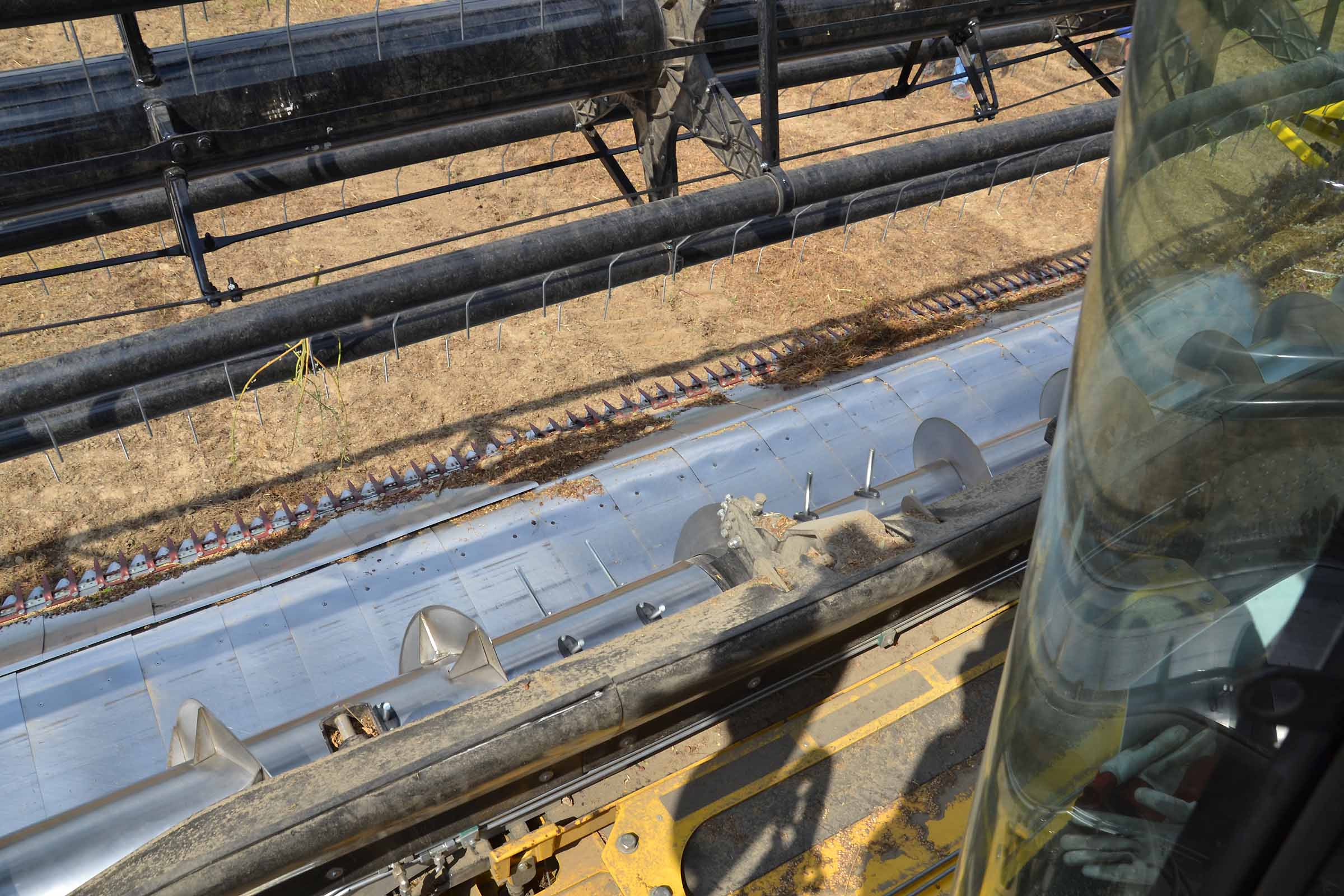 Nella foto si apprezza come il terreno su cui abbiamo lavorato fosse asciutto. In queste condizioni è possibile lavorare con la pressione al suolo elevata senza alcun rischio di provocare accumuli di terreno al di sotto della lama di taglio. Gli agricoltori hanno interesse ad avere un taglio radente al suolo mentre il trebbiatore deve sempre considerare i maggiori costi derivanti dalla maggiore usura.