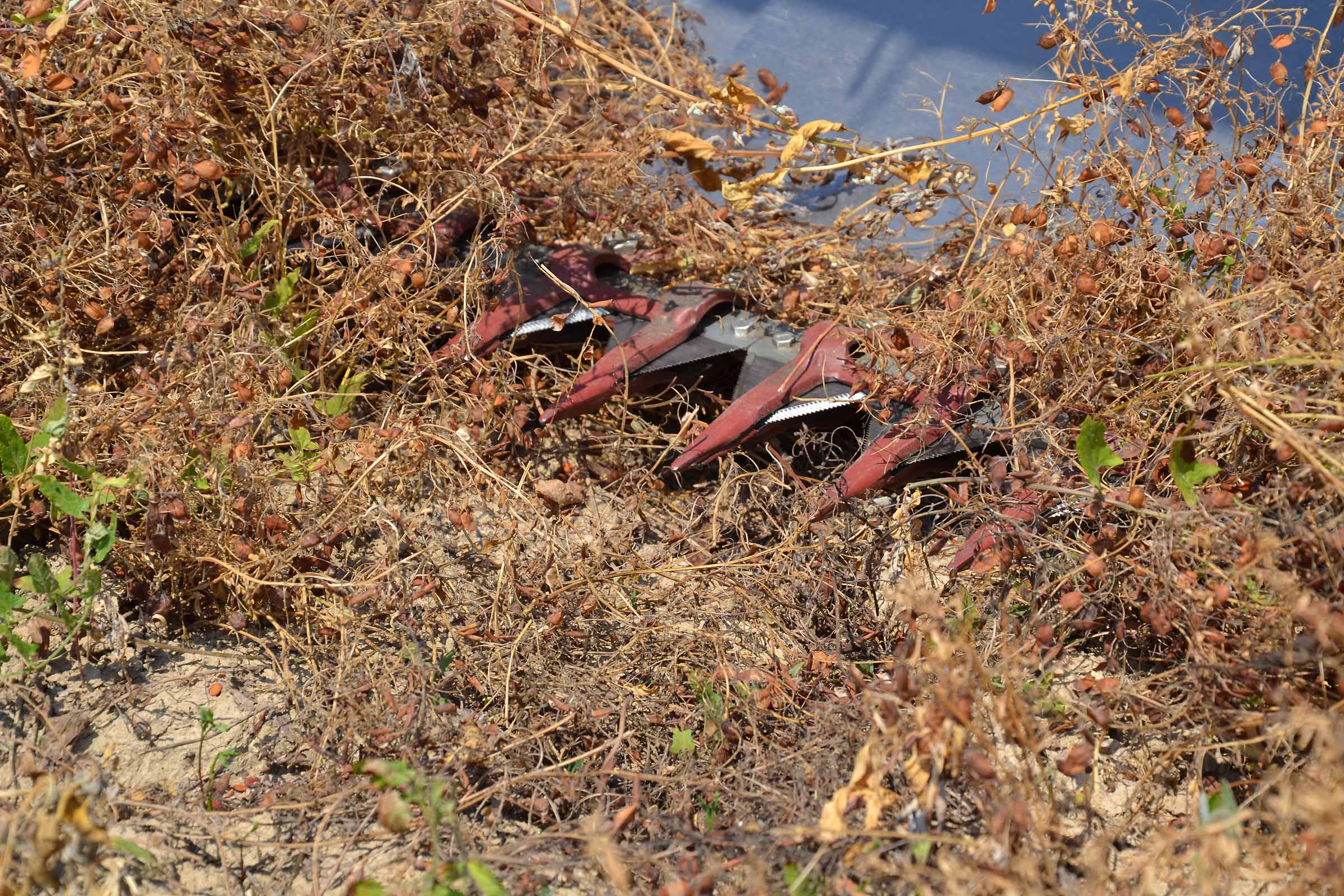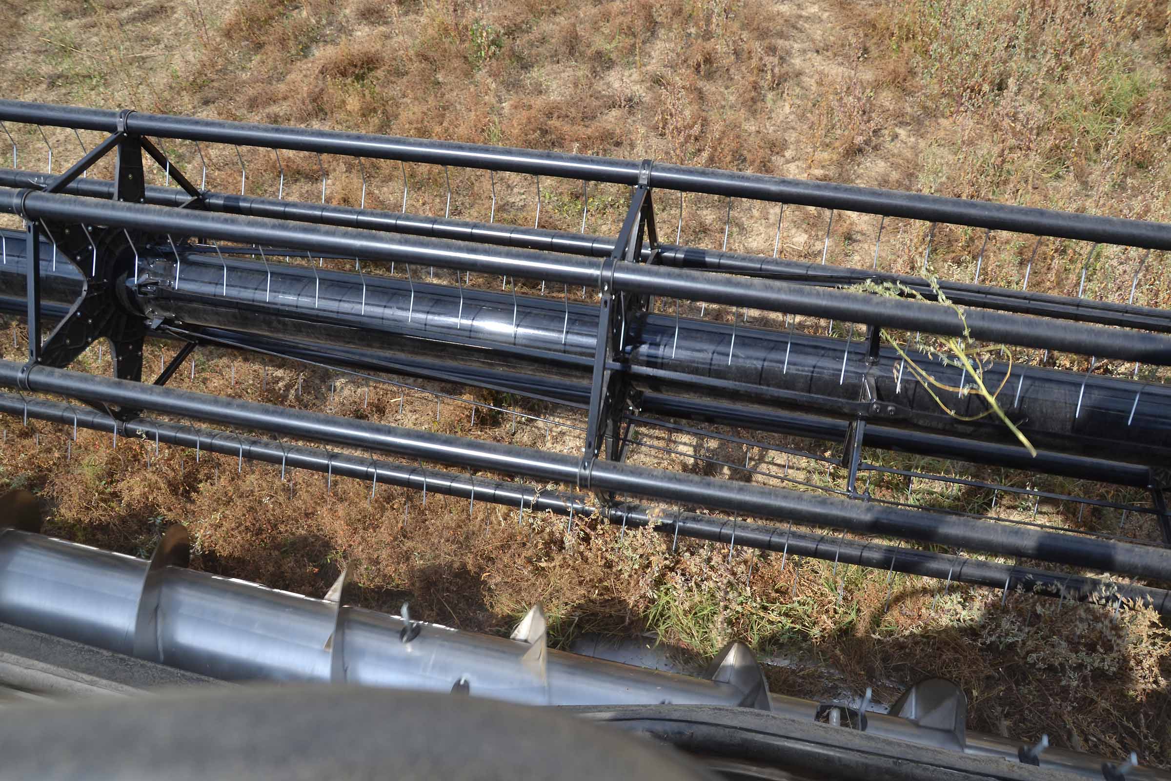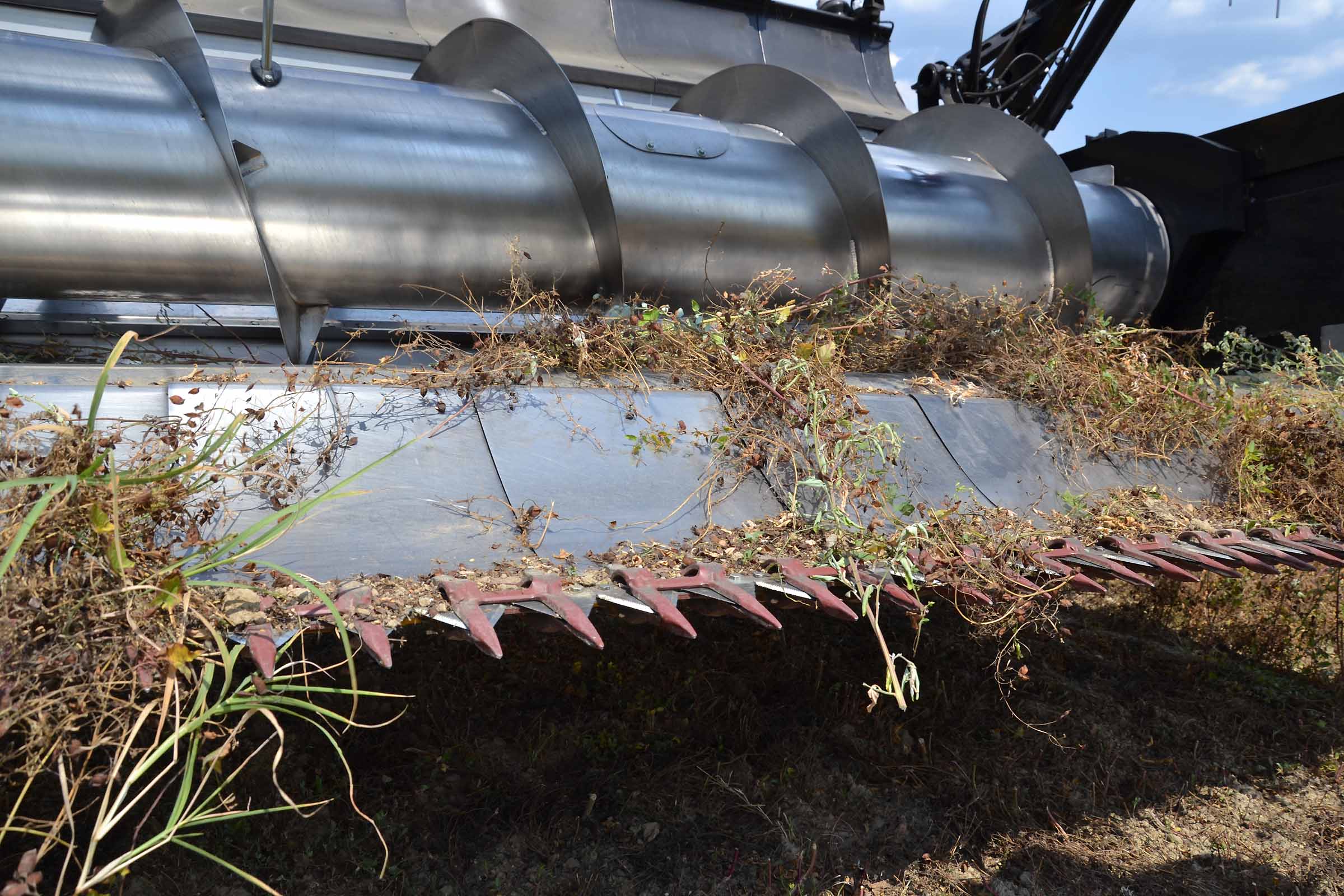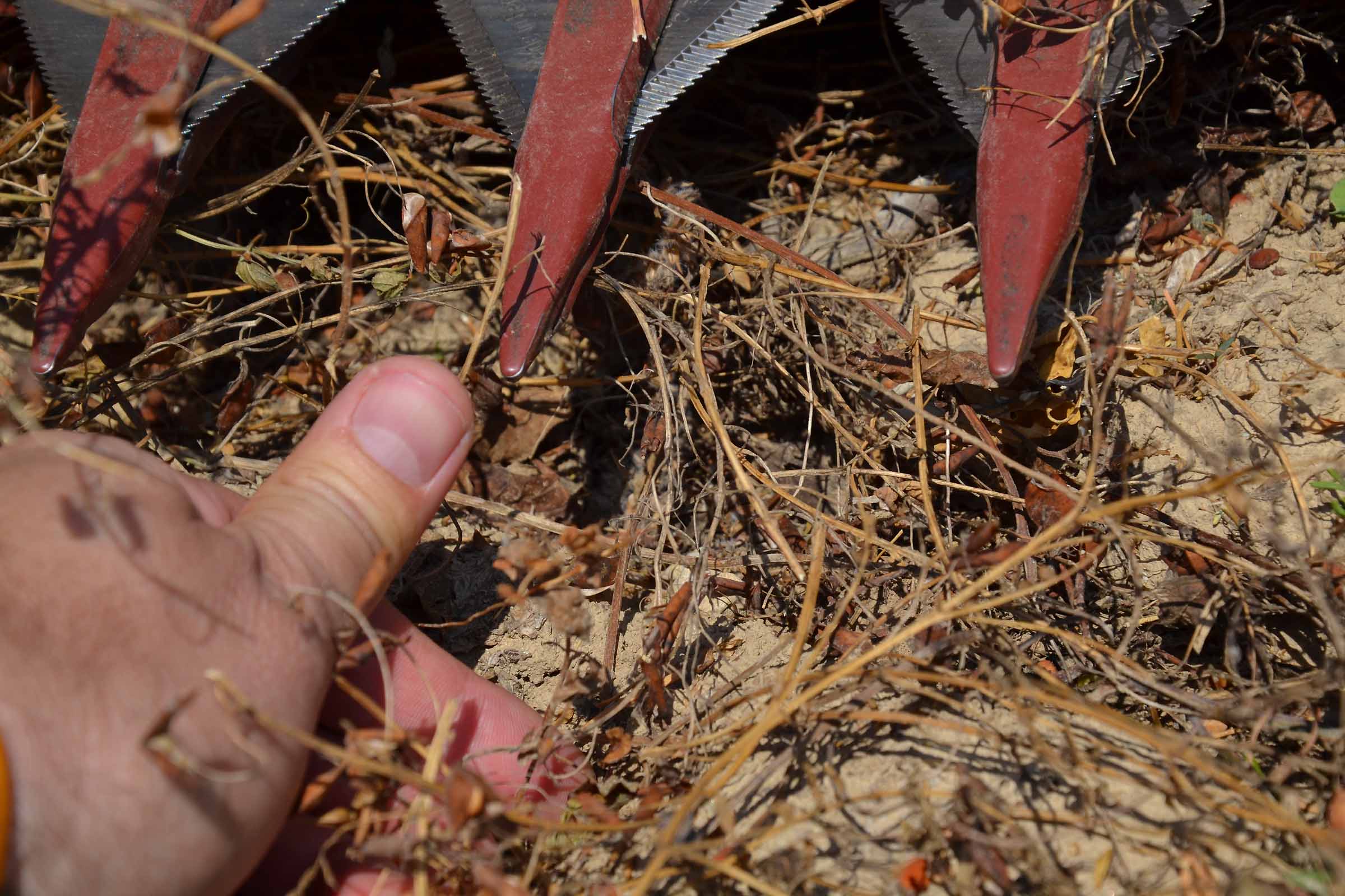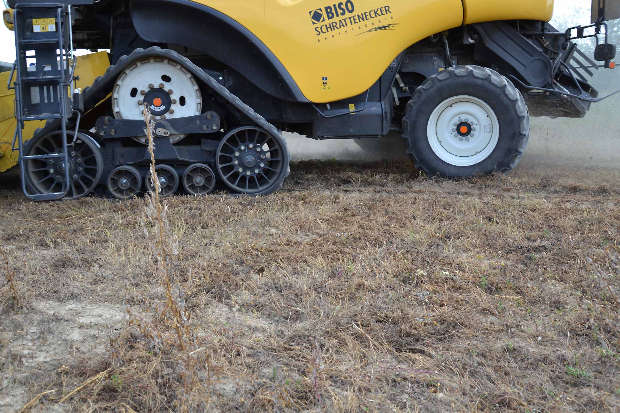 Nella foto si apprezza come il terreno su cui abbiamo lavorato fosse asciutto. In queste condizioni è possibile lavorare con la pressione al suolo elevata senza alcun rischio di provocare accumuli di terreno al di sotto della lama di taglio. Gli agricoltori hanno interesse ad avere un taglio radente al suolo mentre il trebbiatore deve sempre considerare i maggiori costi derivanti dalla maggiore usura.