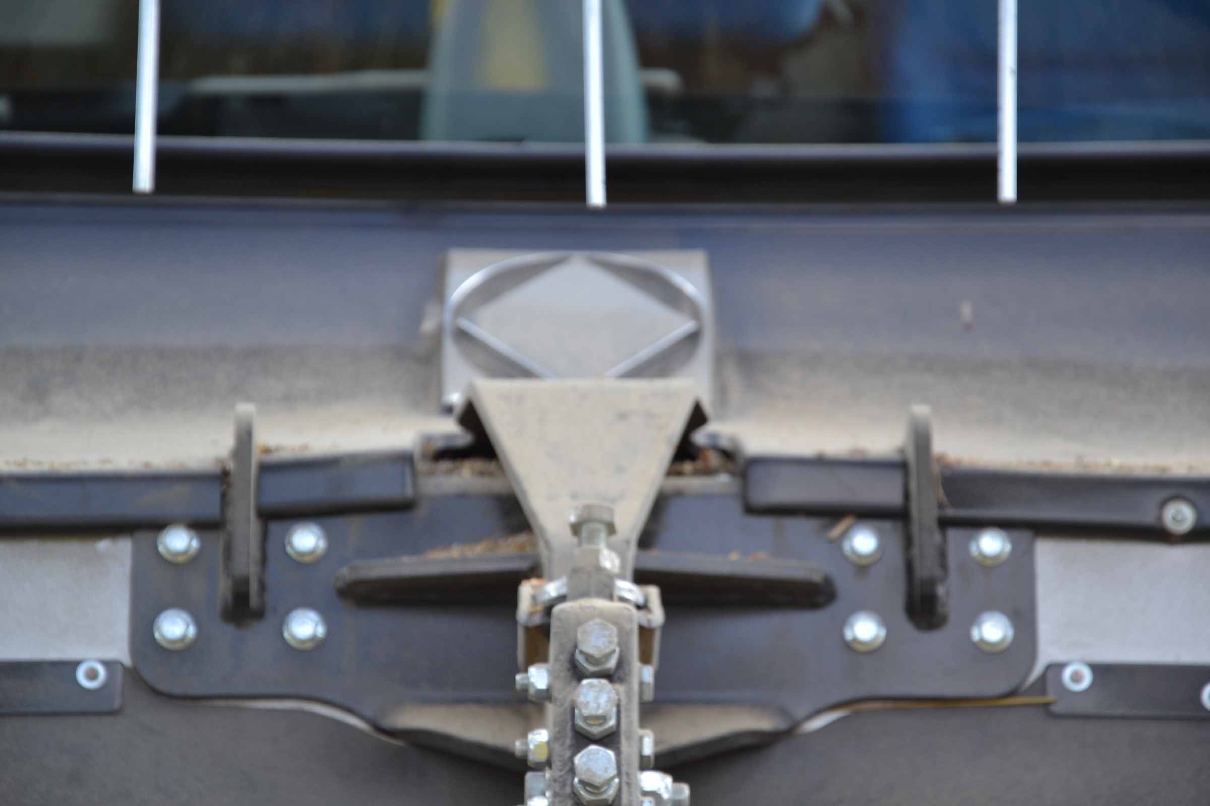 Il sistema di aggancio della barra di taglio BISO non sono cambiati rispetto al passato. Abbiamo però migliorato la base della piattaforma attraverso una porzione della stessa ripiegata verso il basso che permette un aggancio facile anche nelle condizioni più difficoltose, come nella foto qui sopra o nelle ore notturne.